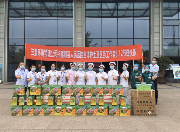 瀘州三鼎房產(chǎn)環(huán)境管理有限公司何總代表全體員工為各合作醫(yī)院護(hù)士、醫(yī)生們送去小小的關(guān)心和慰問,希望繼續(xù)堅持崗位的同時更要照顧好自己,您們的堅守才會有完全勝利的明天!